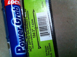 I picked out a trim that was polyurethane because it had the look I wanted for a cheaper price. Because of this, I used Power Grab instead of wood glue. If you have wood trim you can use wood glue instead. For the nails we used 3 inch galvanized nails ( I liked the look of the galvanized better).